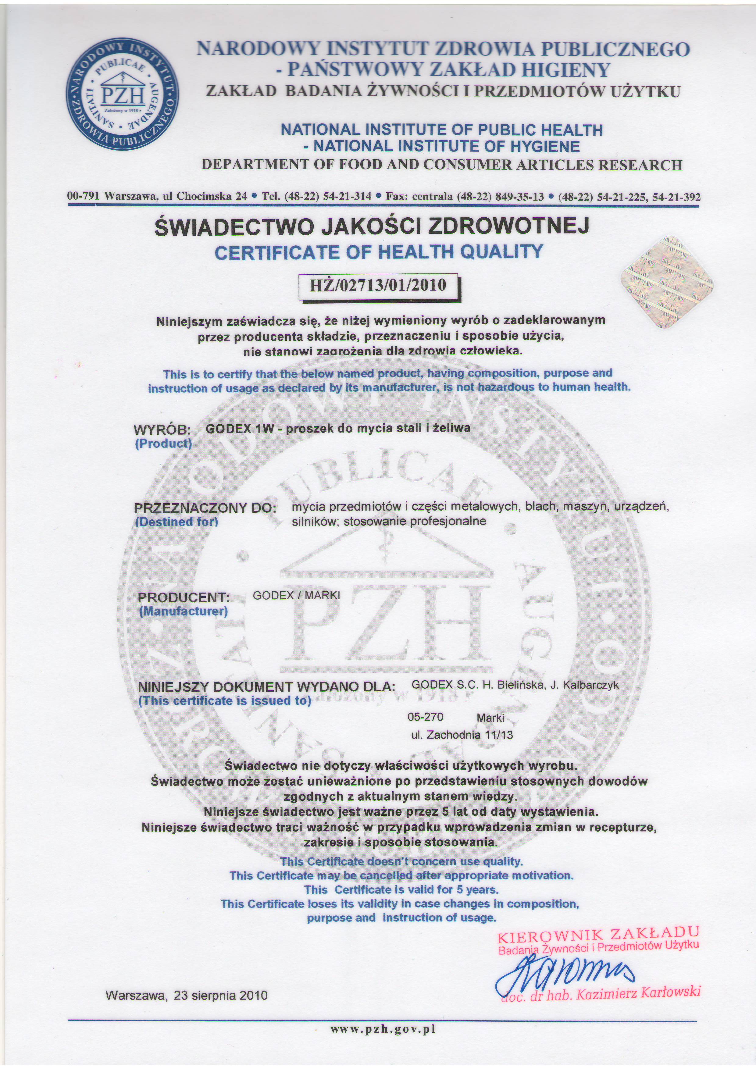 Posiada atest PZH HŻ/02713/01/2010
